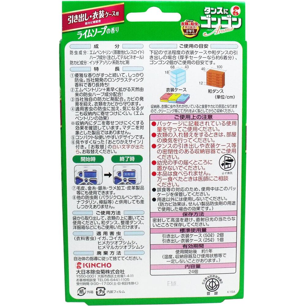 タンスにゴンゴン アロマ 引き出し・衣装ケース用 ライムソープの香り 1年防虫 24個入