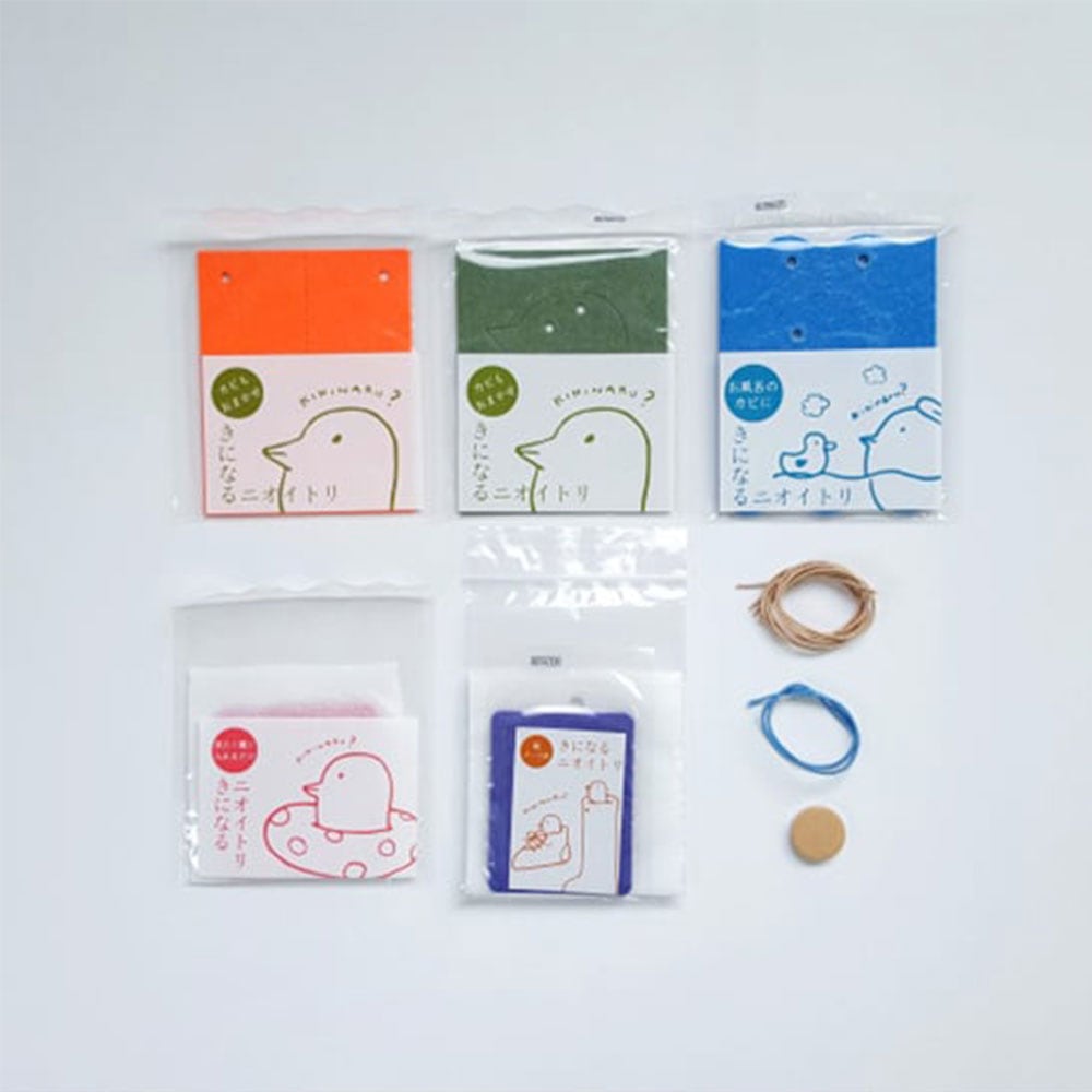 ・きになるニオイトリ(シート2枚、ひも4本)・きになるニオイトリ靴用(シート1枚(1足分)、ひも1本、不織布2枚)・きになるニオイトリ洗たく機用(シート1枚)・きになるニオイトリお風呂用(シート1枚、ひも1本、両面テープ1枚)