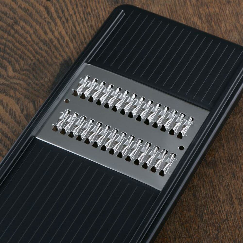 切れ味良く、押し引き両方スピーディーに千切りが出来る特殊クランク刃を採用した千切り器。