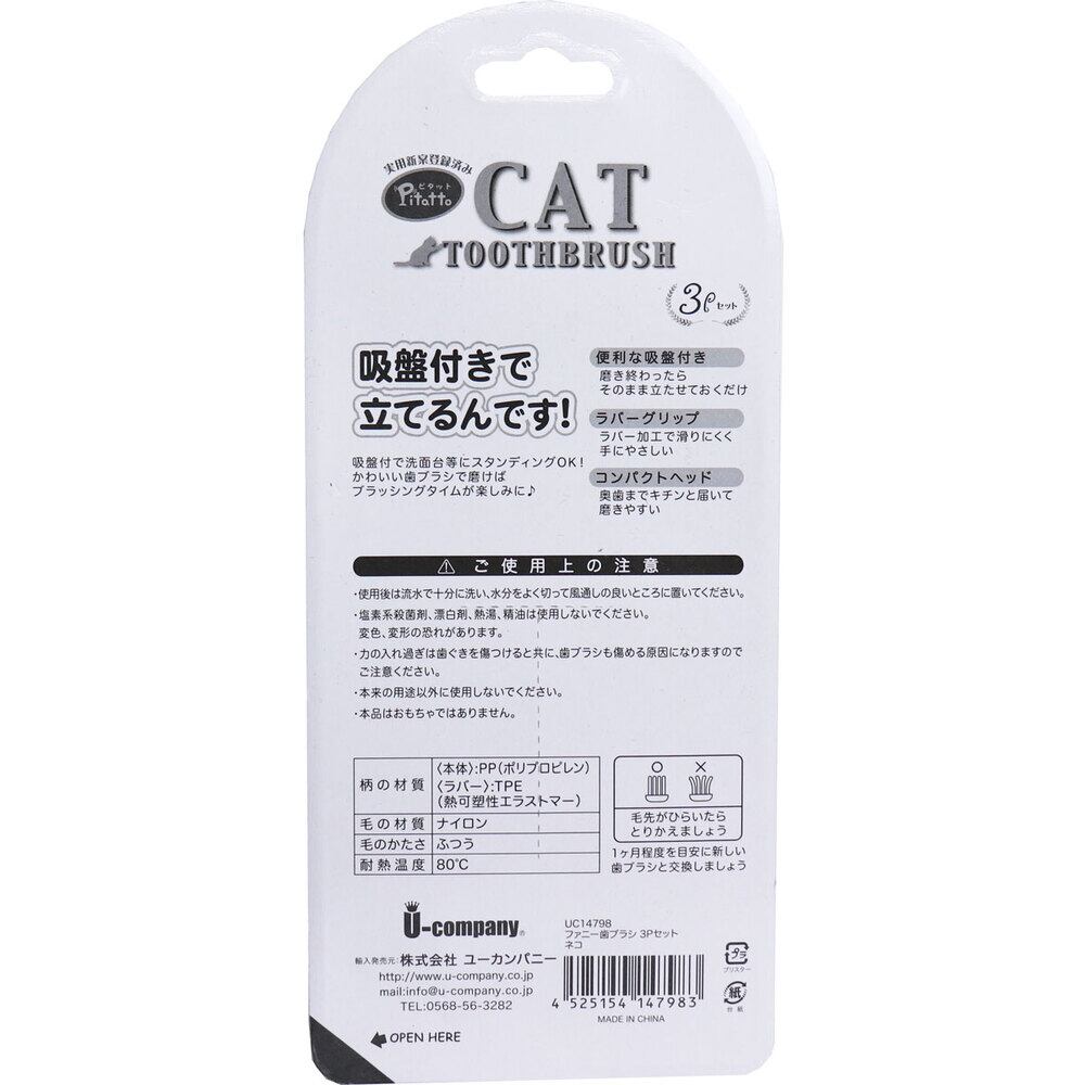 ピタット ファニー歯ブラシ 吸盤付 ネコ 3本セット