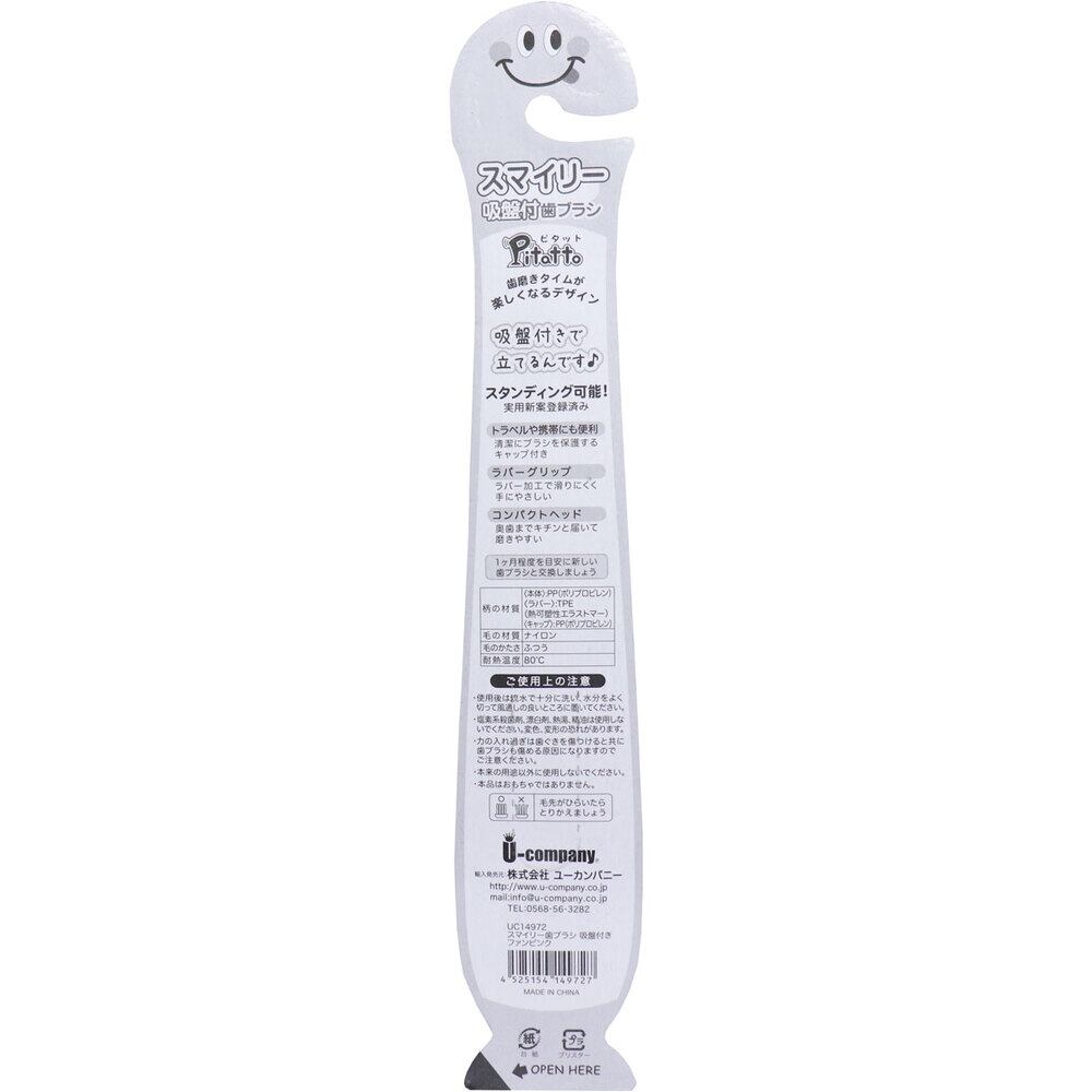 2本の足に付いた吸盤がくっついて立つ衛生的で可愛い笑顔の歯ブラシです。