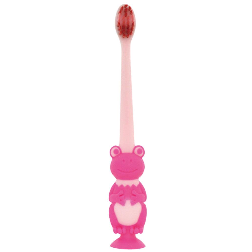 足の吸盤がぴたっとくっつく衛生的でかわいいカエルの歯ブラシです。ニッコリ顔のカエルハブラシで楽しく健康な歯作り。