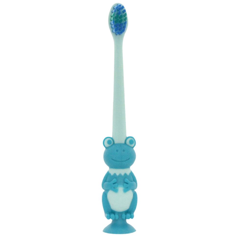 足の吸盤がぴたっとくっつく衛生的でかわいいカエルの歯ブラシです。