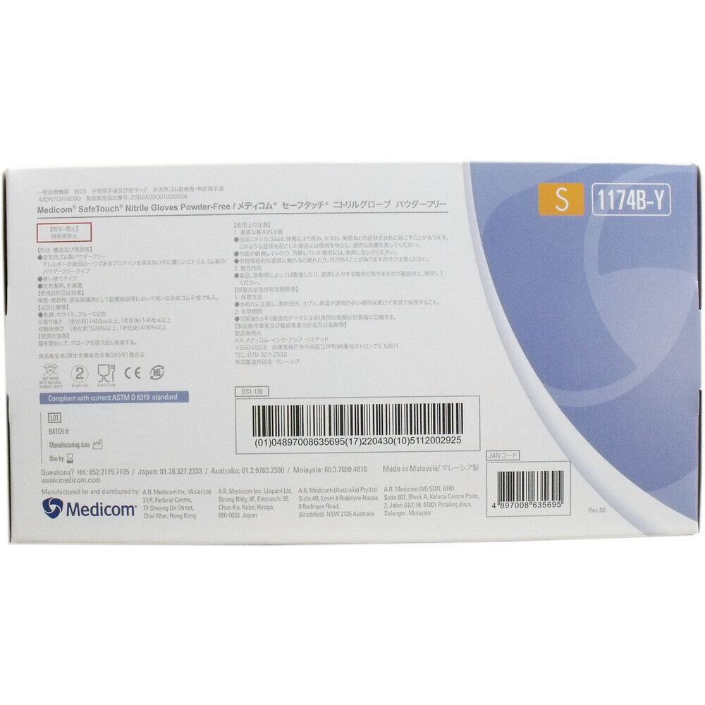 【業務用】セーフタッチ ニトリル手袋 パウダーフリー Sサイズ 100枚入