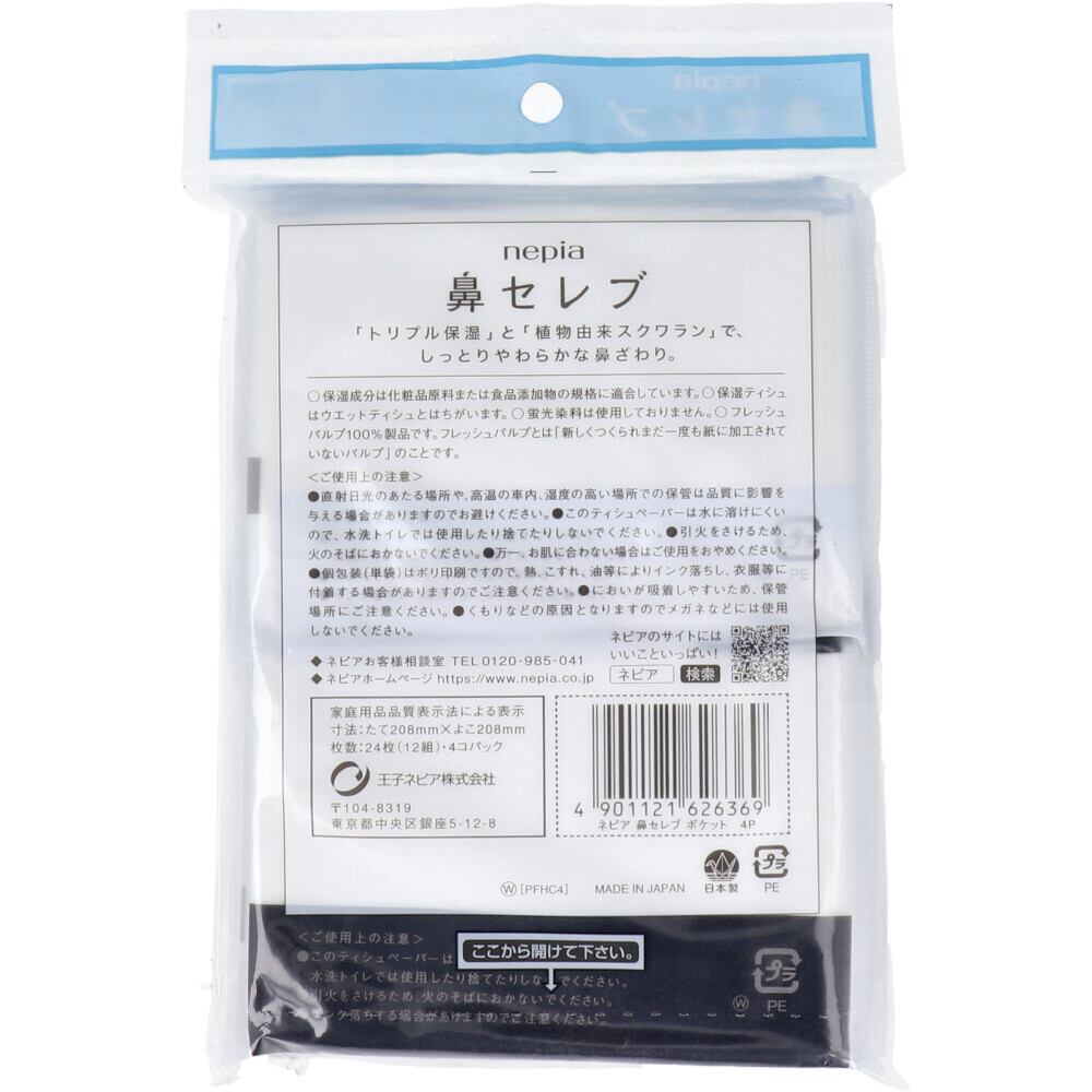 ネピア 鼻セレブ ポケットティシュ 24枚(12組)×4個パック