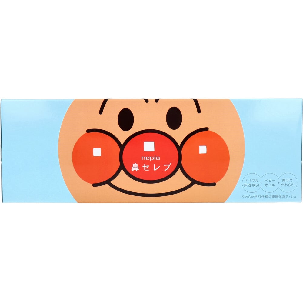 ●おとなにも、かわいい。こどもにも、やさしい。アンパンマンの「鼻セレブ」は、やわらかさにこだわった、ふんわり厚手の特別仕様です。「トリプル保湿」に加え、うるおい成分「植物由来スクワラン」と、「ベビーオイル」を配合。おとなの鼻にはもちろん、デリケートなおこさまの鼻にも、やさしい使い心地です。