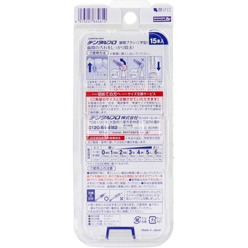 デンタルプロ 歯間ブラシ I字型 極細タイプ サイズ2(SS) 15本入