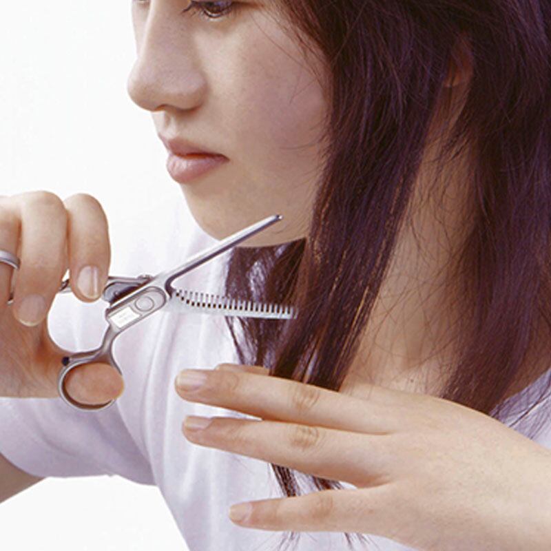 ●ネジは微妙な切れ味を調節し好みの調子を保つ調整式になっています。※極端なネジの締めつけや、ゆるめすぎはハサミの調子を落とし切れなくなる原因にもなりますので調節の際は十分御注意ください。また、ネジをはずしての分解は組み立てられなくなったり、組み立てても切れなくなるおそれがありますので絶対にやめてください。<こんな時に・・・>・髪の量を減らしたい・毛先をぼかしたい・自然な丸味をもたせたい