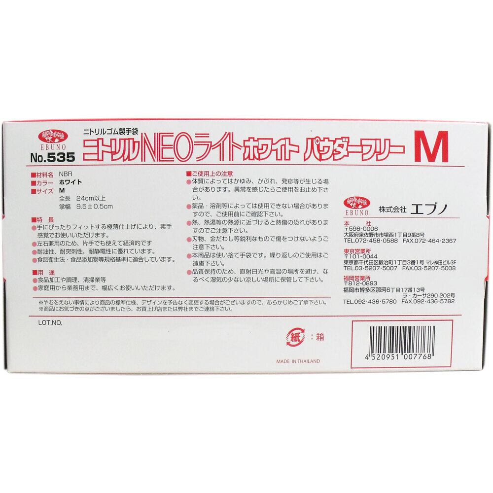 【業務用】ニトリル手袋 NEOライト パウダーフリー ホワイト Mサイズ 100枚入
