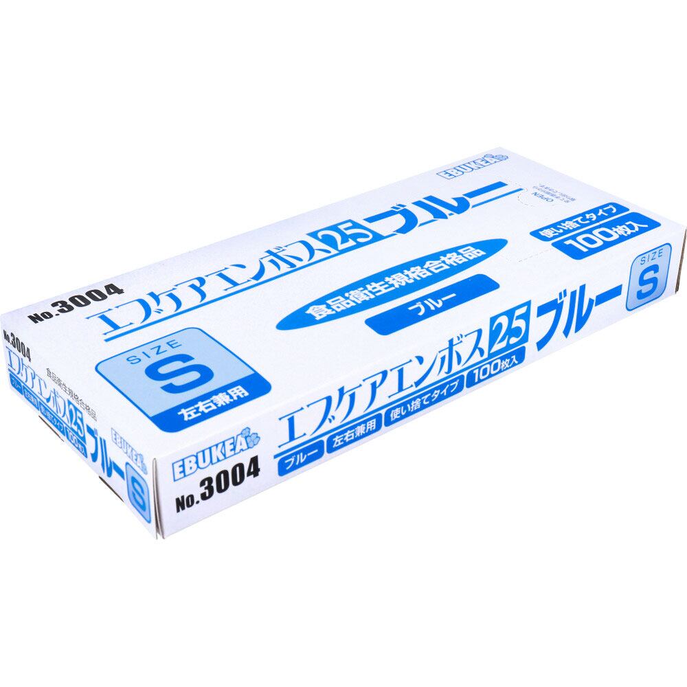 【業務用】No.3004 エブケアエンボス25 食品衛生法適合 使い捨て手袋ブルー Sサイズ 箱入 100枚入