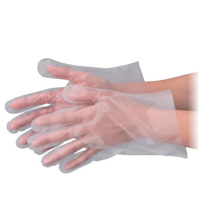 外エンボス加工で滑り止め効果があります。使い捨てタイプのポリエチレン手袋です。