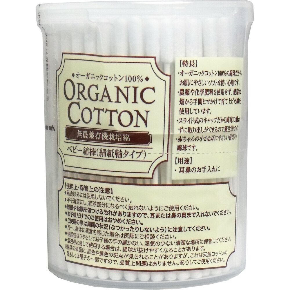 オーガニックコットンベビー綿棒 細紙軸タイプ 200本入