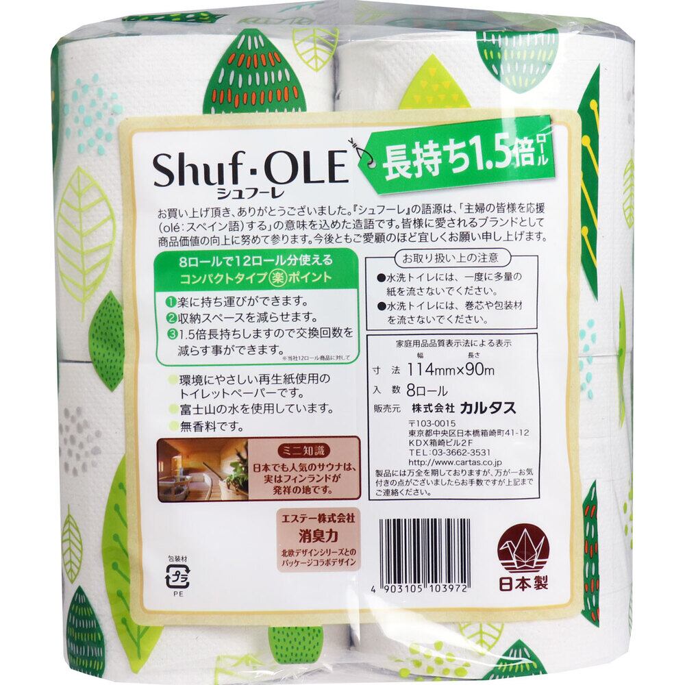 シュフーレ トイレットペーパー 1.5倍巻き 90m×8ロール シングル