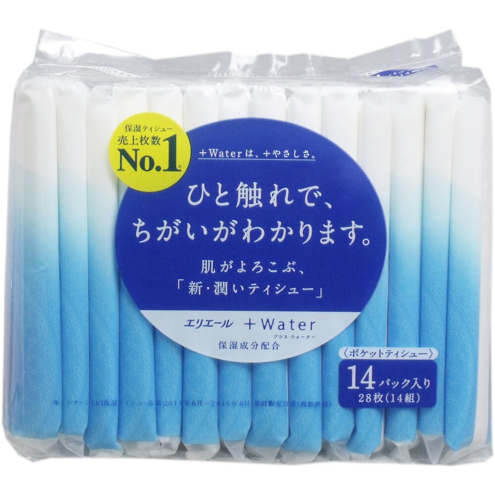 エリエール +Water(プラスウォーター)ポケットティシュー 28枚(14組)×14個パック