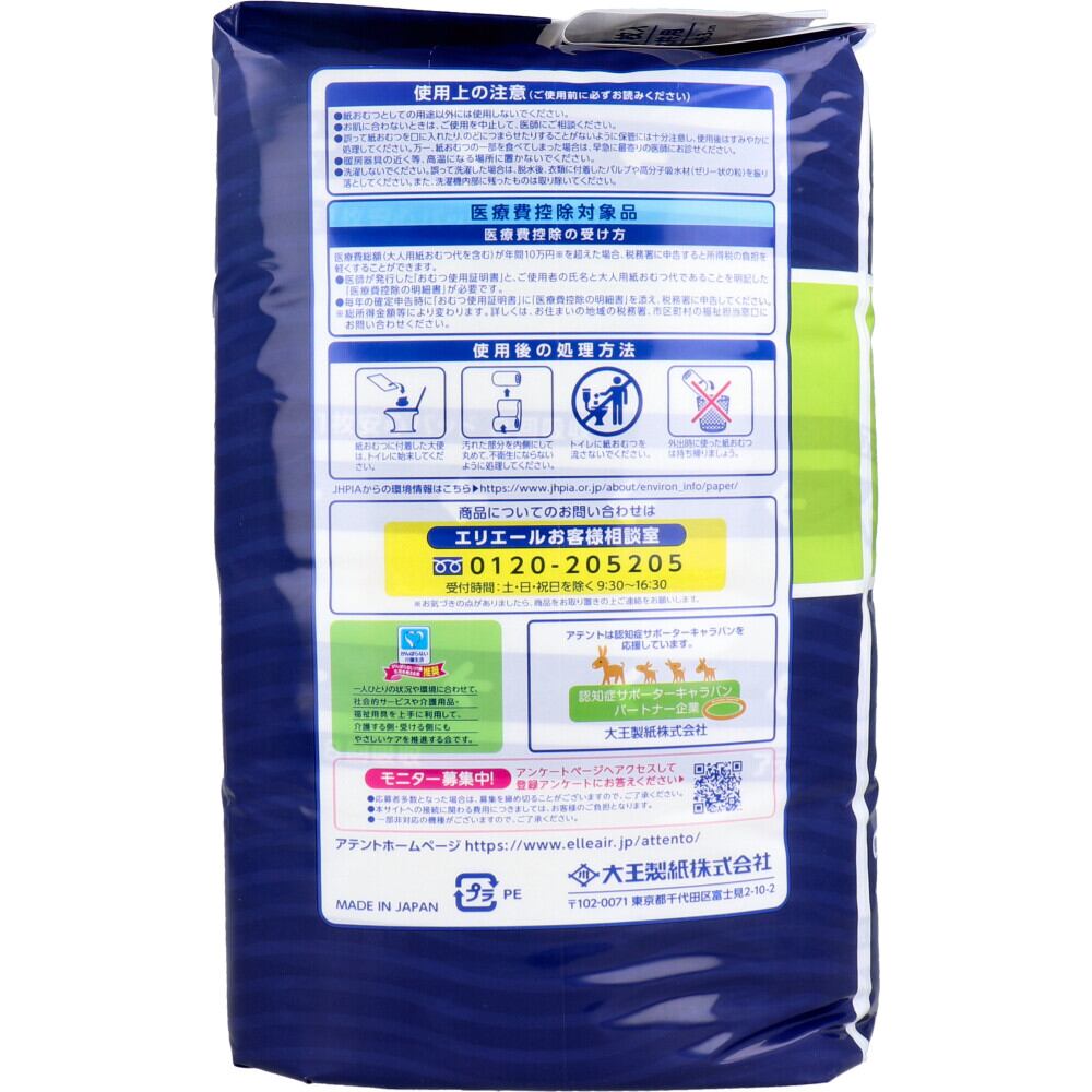 ・使用後の紙おむつの廃棄方法は、お住まいの地域のルールに従ってください。
