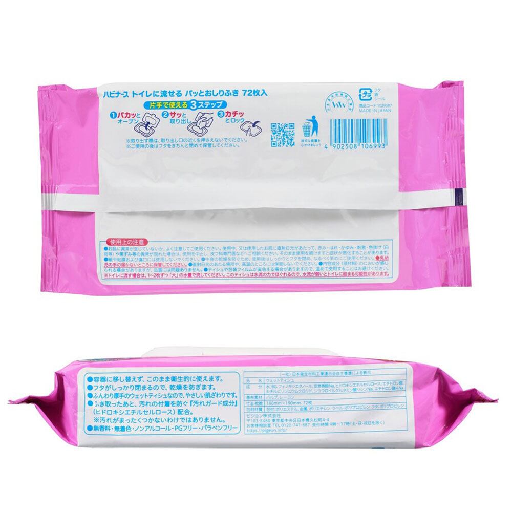 ハビナース トイレに流せるパッと おしりふき 72枚入×2個パック