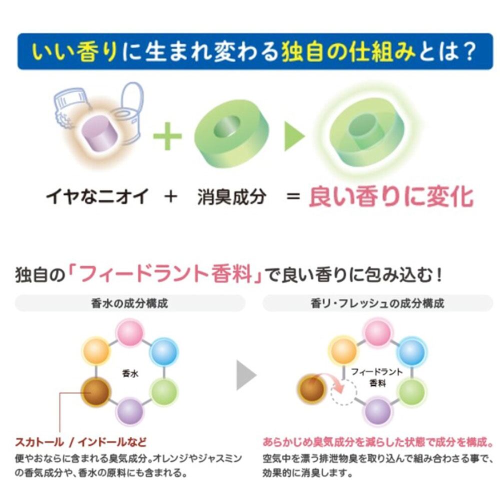 便や尿のニオイが気になる空間にスプレーするだけで、たちまちさわやかな香りへ。「フィードラント香料」が臭気成分を取り込み、効果的によい香りへと変化させます。