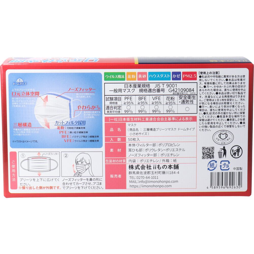 三層構造 口元空間ドーム型マスク 小さめサイズ 50枚入