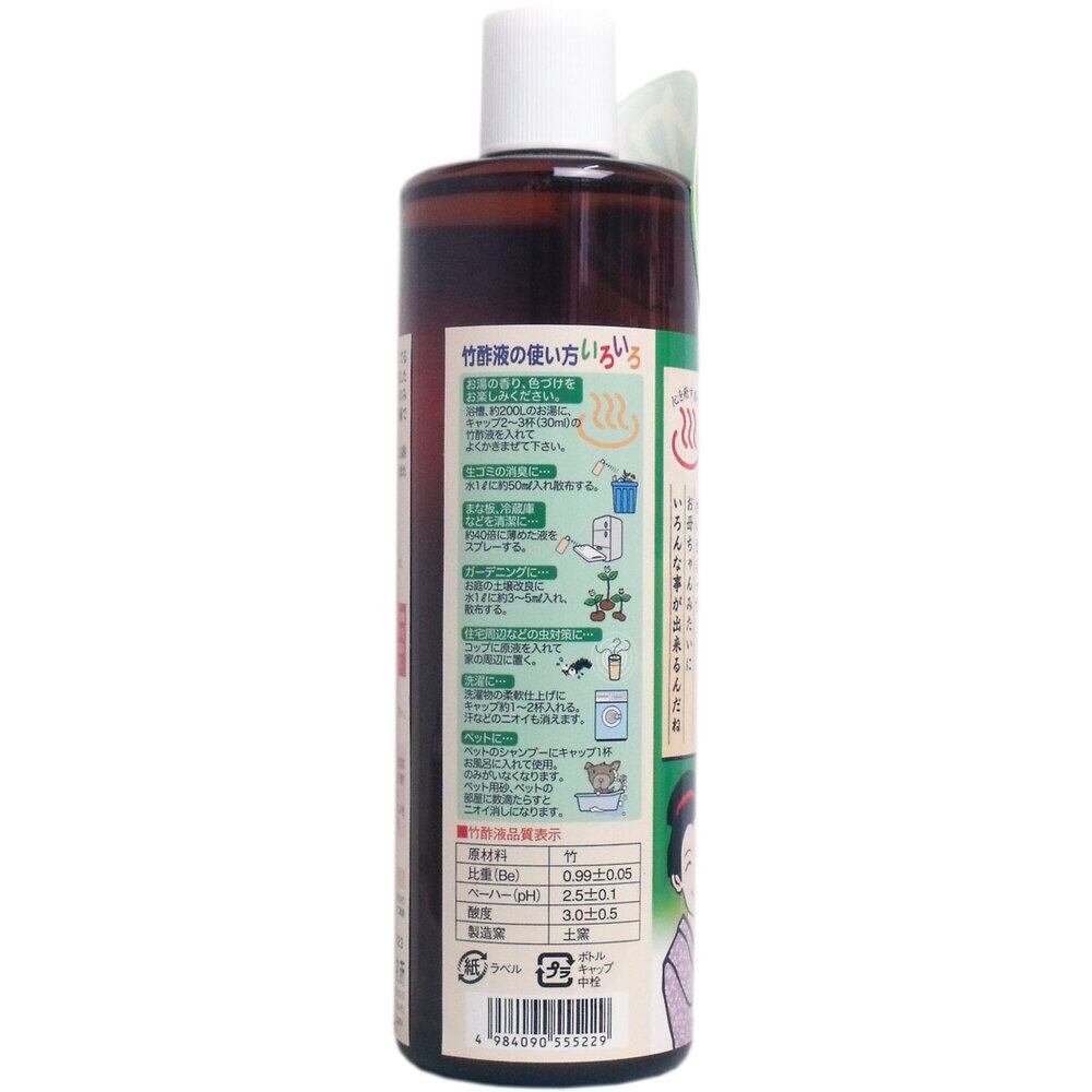 <お風呂でのご使用方法>浴槽、約200Lのお湯に、キャップ2〜3杯(約30ml)の竹酢液を入れ、よくかきまぜてください。