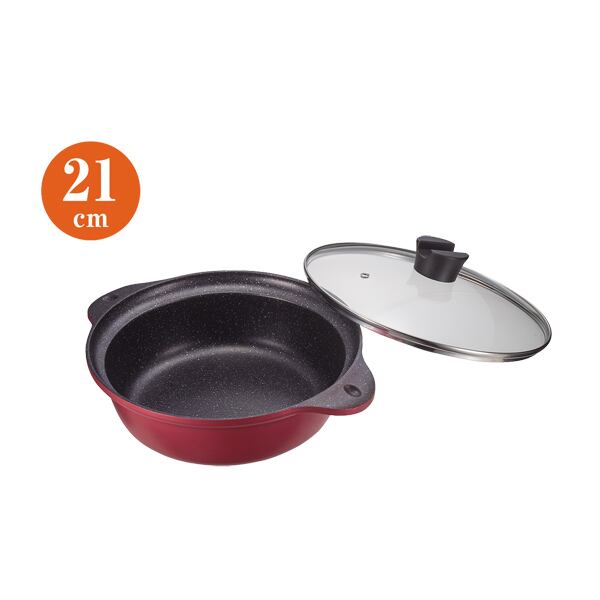 マルチテイスト IH対応ガラス蓋付卓上鍋21cm 紅玉色
