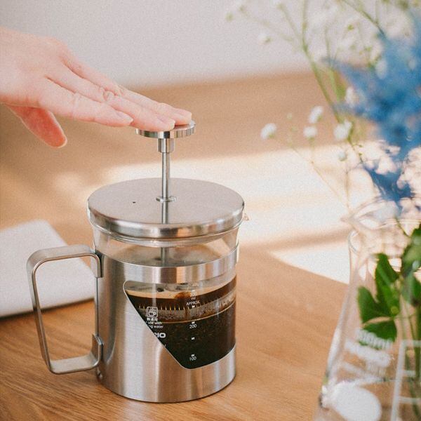 〇オールステンレス製のプレス式コーヒーメーカー。