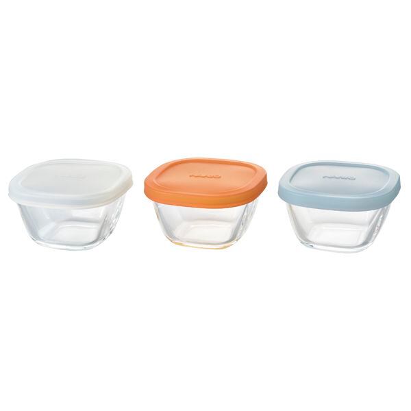 〇密封性の高いシリコーンフタ付き耐熱ガラス製角小鉢。