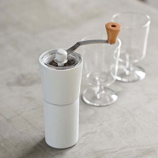 〇本体上下に有田焼を採用した、白く清潔感のあるセラミックコーヒーグラインダーです。