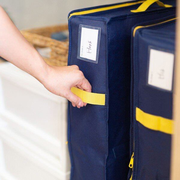 ○クローゼットへの出し入れに便利な持ち手と引き手付きです。