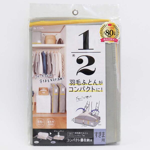 ○芯板で押さえることでクローゼットに羽毛ふとんをコンパクトに収納できる収納袋です。
