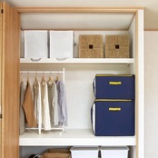 ○芯板で押さえることでクローゼットや押入れに羽毛ふとんをコンパクトに収納できる収納袋です。