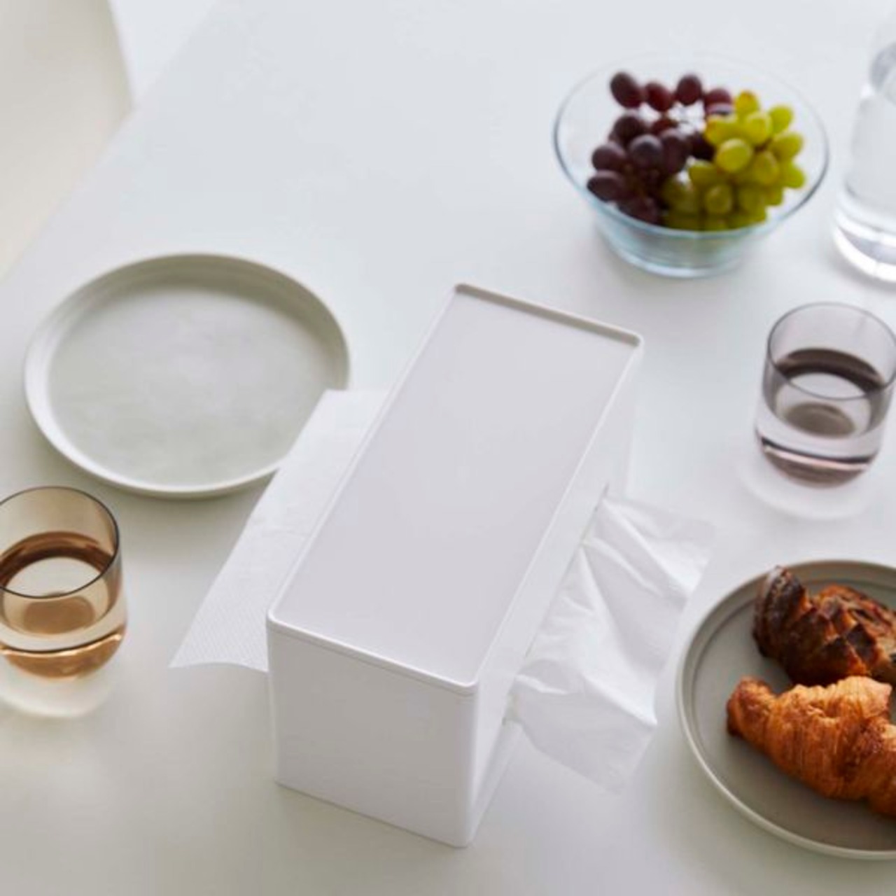 〇ティッシュペーパーやペーパータオルなど2種類のペーパーを同時に取り出せる両面ティッシュケース。