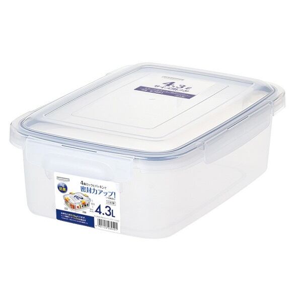 ○大型で汎用性の高い本体満水容量4.3Lの中空シリコーンパッキン付き4辺ロックの密封容器です