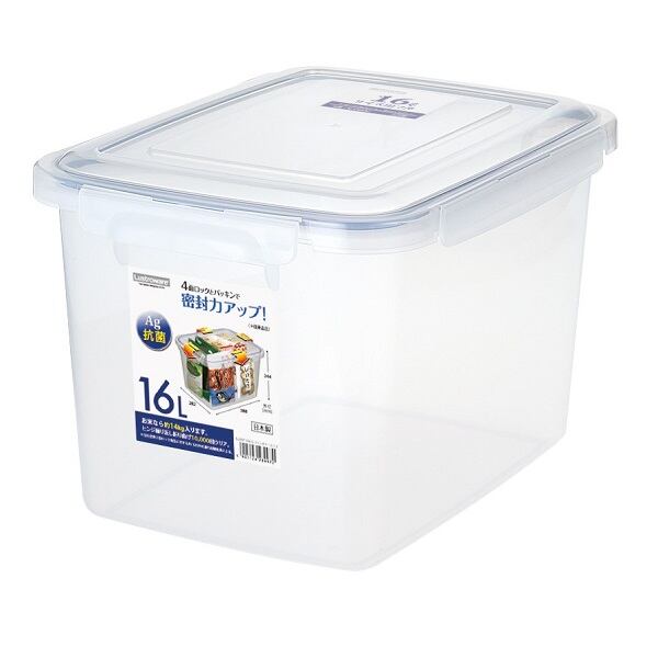○大型で汎用性の高い本体満水容量16.0Lの中空シリコーンパッキン付き4辺ロックの密封容器です