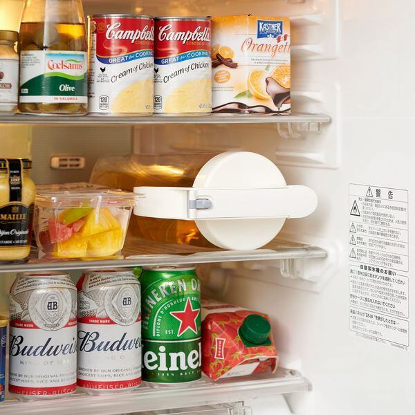 ○手に取った瞬間、使い方がわかる構造の実現を目指しました、ハンドルを握ったままワンプッシュで注げて、ワンプッシュで中栓を閉じ、ロックも完了、そのまま冷蔵庫へ棚置きしても横にしても、ドアポケットに入れても、野菜室に入れても、スッキリ収まる2.2Lサイズ。