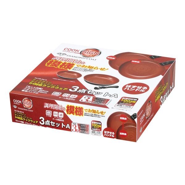 クックサイン ダイヤモンドコートIH対応クックウェア3点セットA