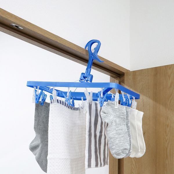 〇物干し竿や洗濯ロープにしっかり固定できるキャッチ式で直径38mmのふとん干し用ふと竿にもご使用になれます。