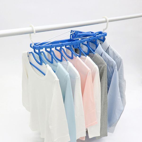 〇シャツやタオルがまとめてスッキリ干せる折りたたみ8連ハンガーです。