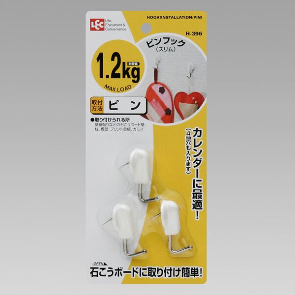 本体サイズ(約):W20×D30×H35mm取り付け方法:ピン荷重(約):1.2kg包装形態:ブリスター台紙(1台紙3個付)