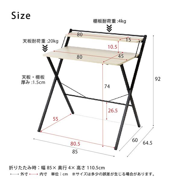 商品サイズ(約):W850×D645×H920mm商品重量(約):7.8kg耐荷重(約):天板20kg 棚板4kg組立品