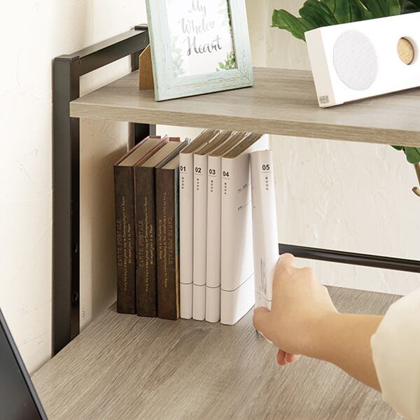 〇天板の高さとシェルフ位置を切り替えできるのでお部屋のレイアウトや自分の好みに合わせた使い方が可能。