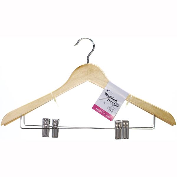 木製ハンガークリップ付2本組