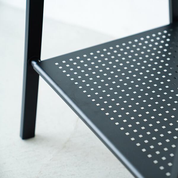 〇棚板の片側を取り外せばスリムに折りたたんで収納可能です。
