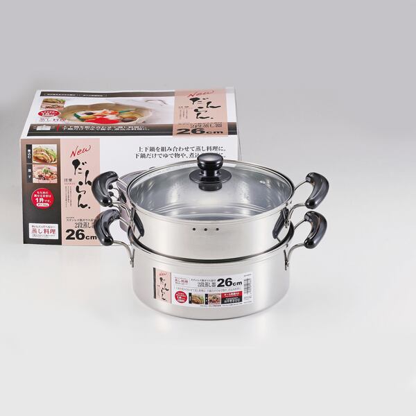 NEWだんらん ステンレス製ガラス蓋付2段蒸し器26cm