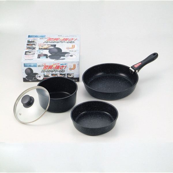 ○こびりつき・キズに強い「ストロングマーブル」の調理器具のセットです。