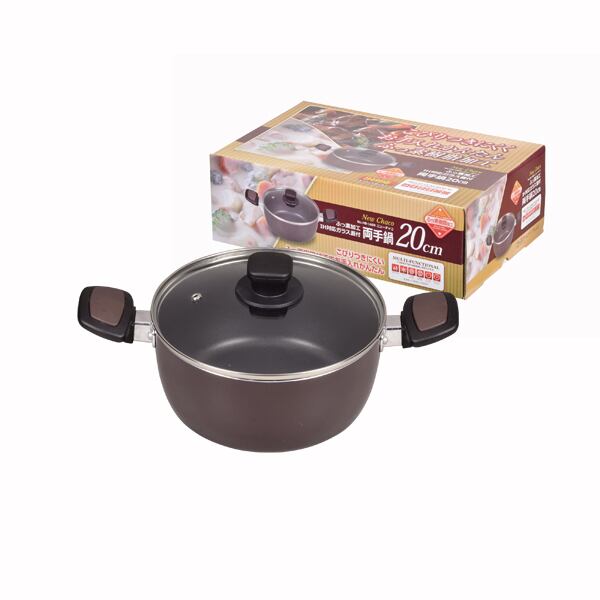 ニューチャコ ふっ素加工IH対応ガラス蓋付両手鍋20cm