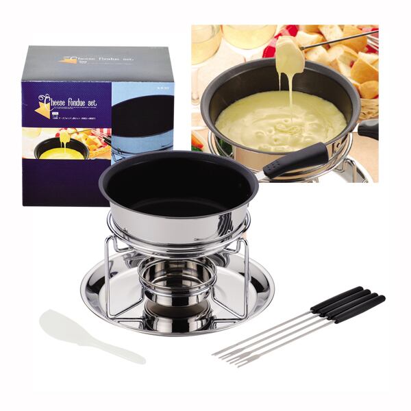 ○鍋からフォーク、ヘラまですぐにフォンデュができるセット。