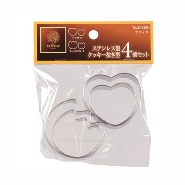 ラフィネ ステンレス製クッキー抜き型4個セット(ハートM・S・チューリップM・S)