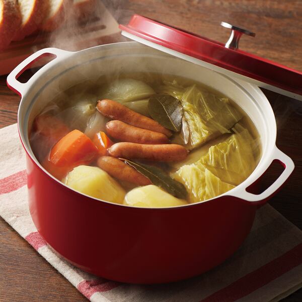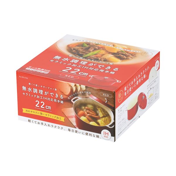 無水調理ができるセラミック加工IH対応両手鍋22cm レッド