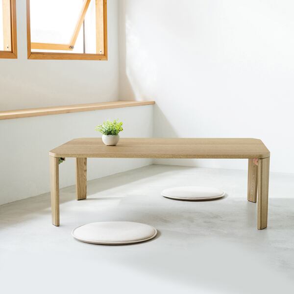 〇天板も脚も木材ならではの質感や風合いを感じられる突板仕様(オーク)です。