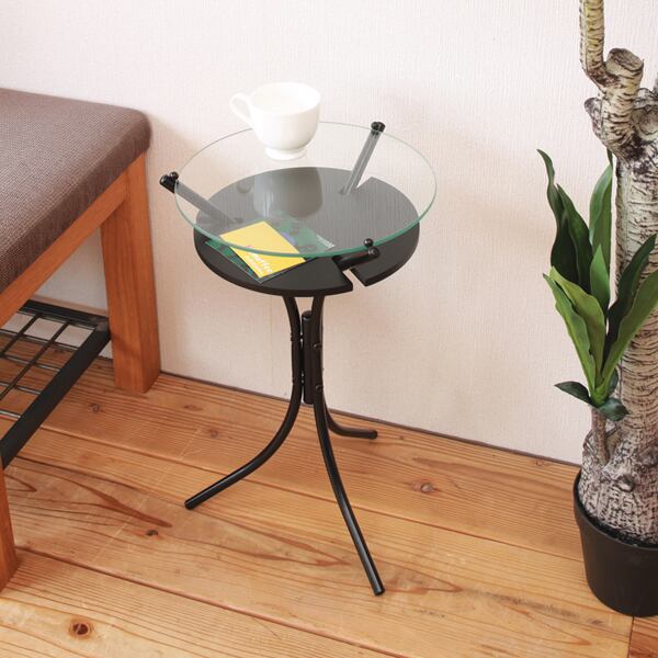〇スタイリッシュなガラス天板のサイドテーブル。